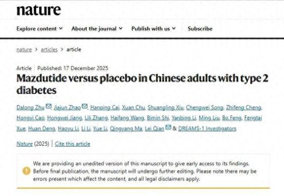 1月10日,“玛仕度肽Dreams系列研究成果研讨会”在北京举办。会上宣布,国产减重降糖创新药玛仕度肽两项关键三期临床研究已于2025年12月18日发表于知名国际学术期刊《自然》主刊。这是《自然》创刊以来,首次在代谢疾病领域发表来自中国的三期临床研究。
