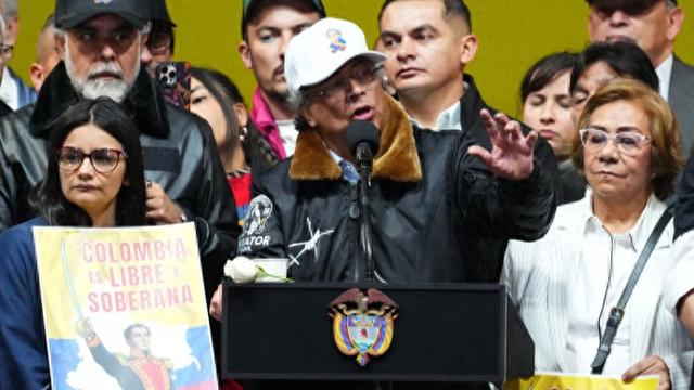 1月7日,在哥伦比亚首都波哥大,哥伦比亚总统佩特罗在玻利瓦尔广场举行的示威游行活动中发表讲话。新华社发