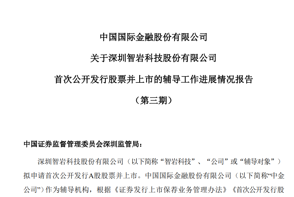 乐居财经 李兰 1月7日,深圳智岩科技股份有限公司(以下简称:智岩科技)披露首次公开发行股票并上市的辅导工作进展情况报告(第三期),辅导机构为。
