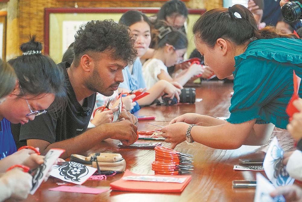 在这些活动中,柘荣剪纸不只展示技艺,更通过青年交流、乡村体验、文创赋能等方式,让外国人“动手剪一张”,在指尖的律动中感受中国文化的温度与智慧。而在“走出去”的同时,国际友人也纷纷慕名而来,探寻剪纸的奥秘。