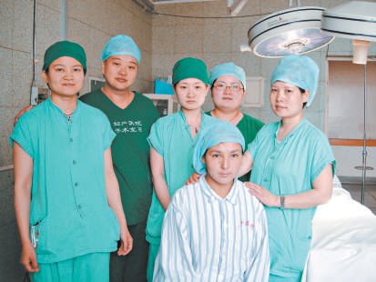 托合苏力坦罕(中)在北京妇产医院接受治疗