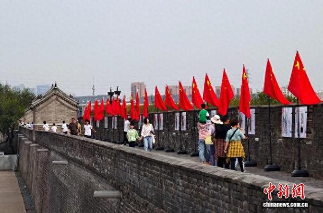 “今天专程带孩子来登城墙,看到这么多国旗,感觉特别不一样。”带着孩子的张先生感慨道,“在这里给孩子讲幸福生活来之不易,特别有说服力。”