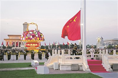 国歌奏响,红旗漫卷。在《义勇军进行曲》的旋律中,五星红旗冉冉升起,迎风招展。“那一刻,只剩下心跳和国歌在共鸣。”来自河北的大学生王梓涵说,选择国庆到北京看升旗,“比想象中更震撼,更能感受到国家的脉搏”。