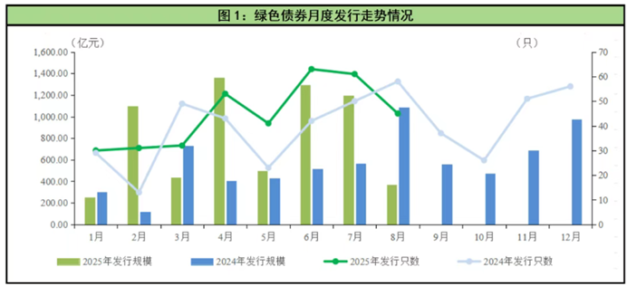 【环球网财经综合报道】近日,中诚信绿金发布了《2025年ESG债券市场分析8月报》,数据显示2025年1~8月国内市场已发行绿色债券356只,规模共计6478.54亿元,与去年同期相比发行只数增加15.96%,发行规模增加56.76%。其中8月新发行绿色债券45只,规模共计364.20亿元,较去年同期发行只数下降22.81%,发行规模下降66.63%。