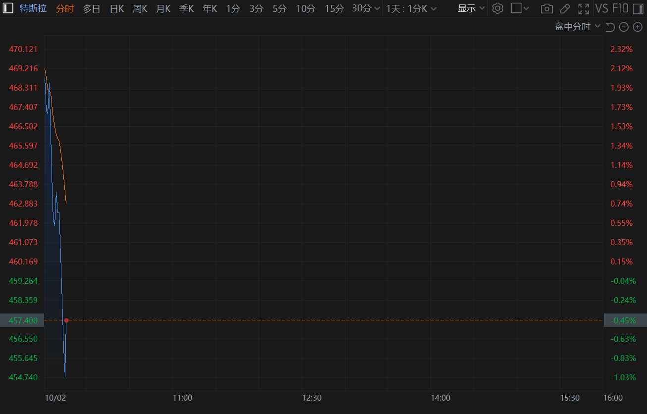 美股异动丨特斯拉高开低走转跌 盘初一度涨超2%